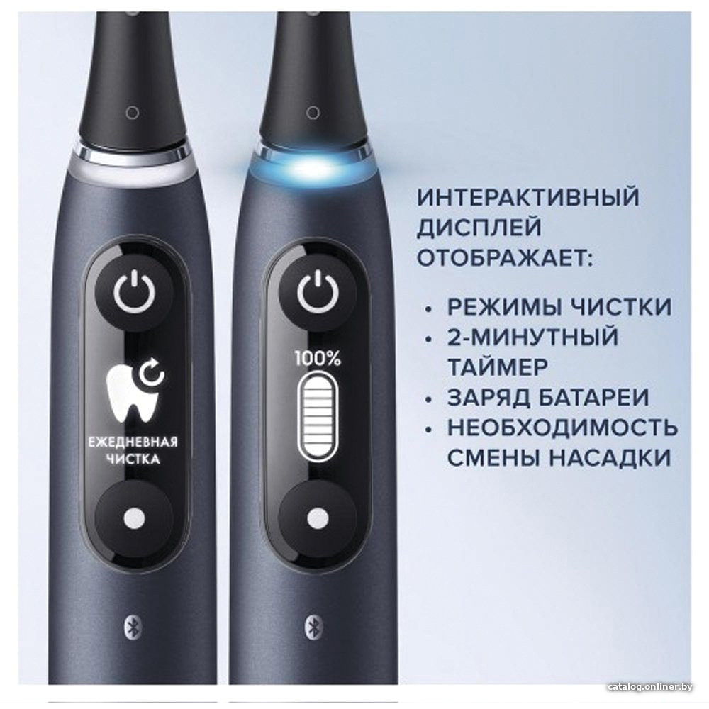 зубная щетка, мягкая чистка/глубокая чистка/отбеливание/массаж, питание от аккумулятора, движение головки: вращение + пульсация, дисплей, поддержка мобильного приложения, в комплекте: футляр, подставка-зарядная база, количество насадок: 1