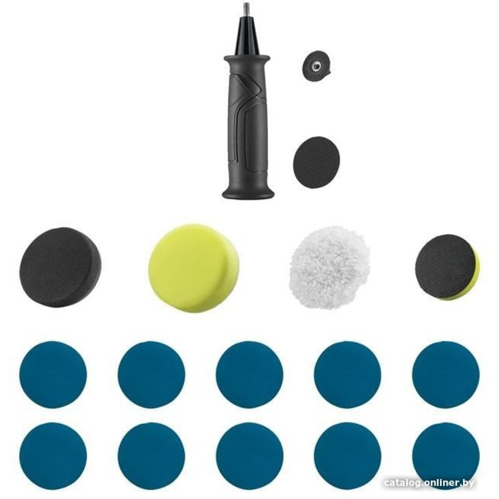 - Комплект поставки- полировальная подошва, - шерстяная насадка, - черная вспененная полировальная пасадка, - шлифовальная подошва, - 10 шлифдисков (2 х 400G, 2 x 800G, 2 x 1500G, 2 x 2000G)