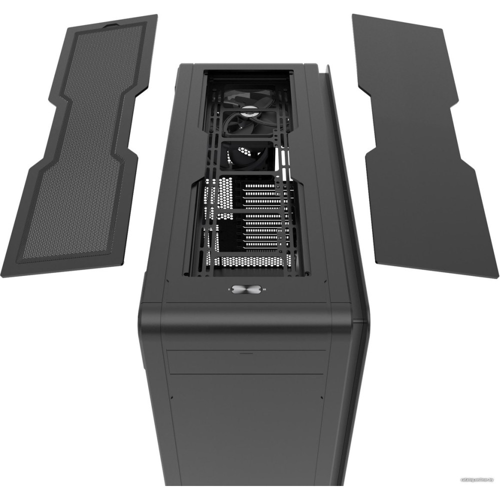 Super Tower, БП отсутствует, для плат ATX/mini-ITX/eATX/SSI EEB, с 5 вентиляторами в комплекте, с контроллером вращения, окно: закаленное стекло, охлаждение ЦП до 210 мм, пылевой фильтр - сверху/спереди/снизу/сбоку (на одной из стенок), 4xUSB-A 3.2 5Гбит/с, 1xUSB-C 3.2 5Гбит/с, цвет черный