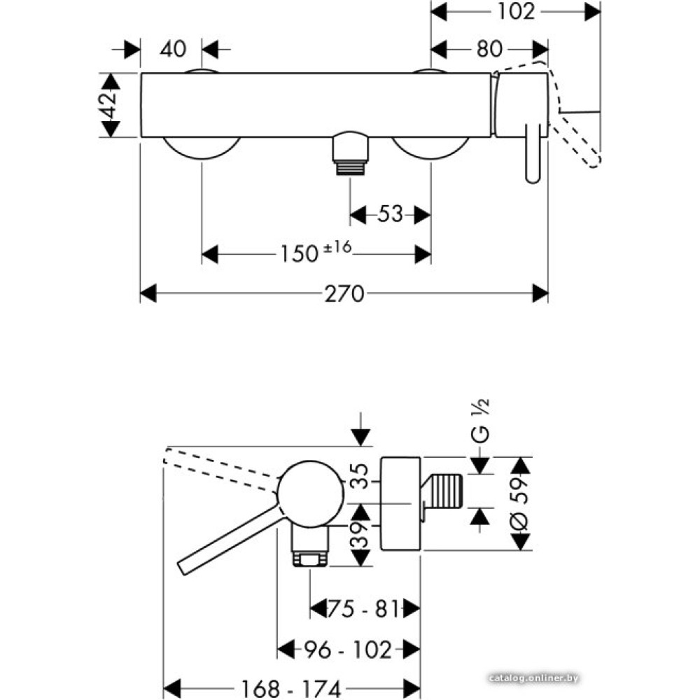 однорычажный смеситель для душа, монтаж на стену