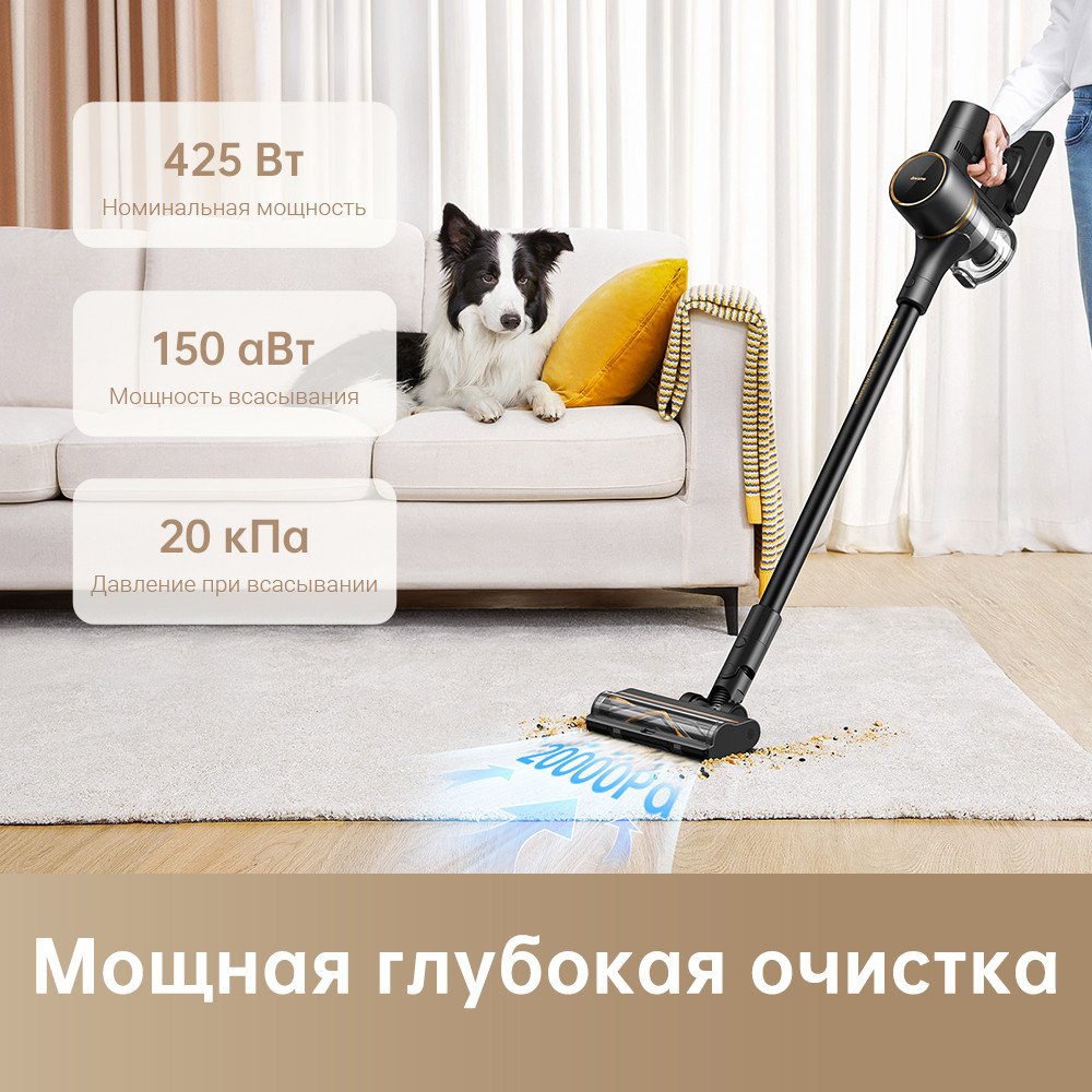 вертикальный, аккумулятор, потребление: 425 Вт, регулировка мощности, турбощетка, станция для хранения без зарядки, шум 80 дБ