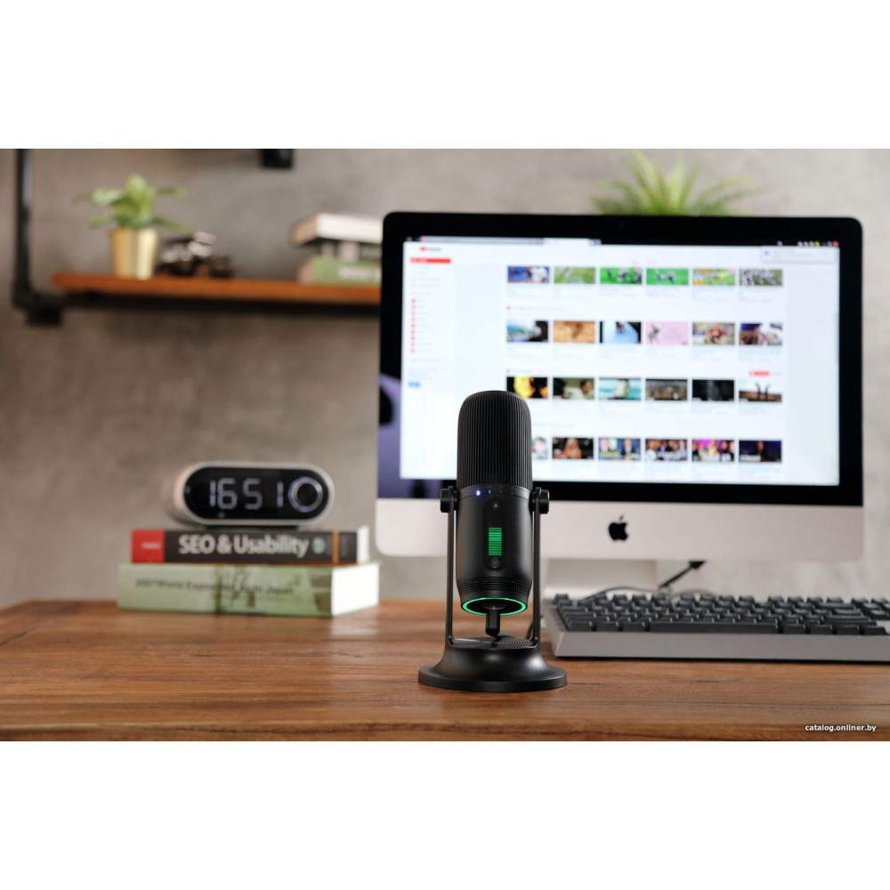 электретный (малый конденсатор), настольный, для стриминга и подкастов, кардиоидная/круговая/двойная ("восьмерка")/стерео направленность, 20-20000 Гц, разъем подключения USB Type-A, длина кабеля 3 м