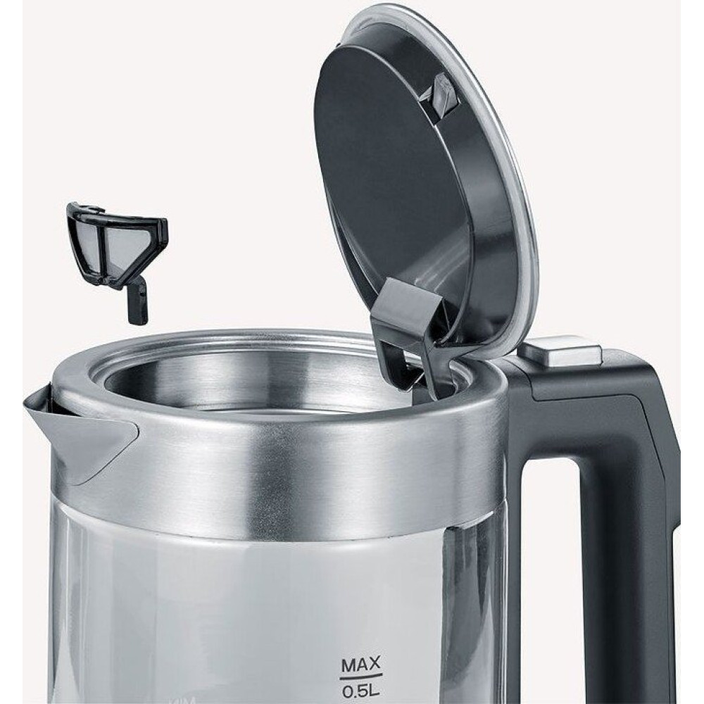 1100 Вт, объем 0.5 л, терморегулятор, цвет прозрачный/серебристый/черный