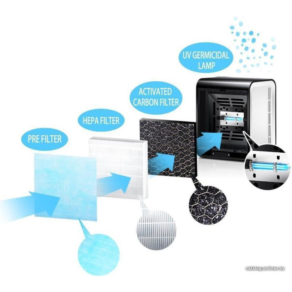 очиститель, 3-ступ. фильтр, для помещения до 20 м², шум 0 дБ, питание: сеть, цвет черный/белый