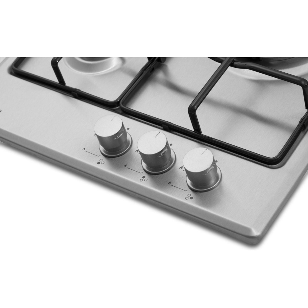 газовая на 3 конфорки, нержавеющая сталь, автоматический электроподжиг, газ-контроль, решетки: эмалированная сталь, независимая установка, размеры (ШхГ): 44x52 см