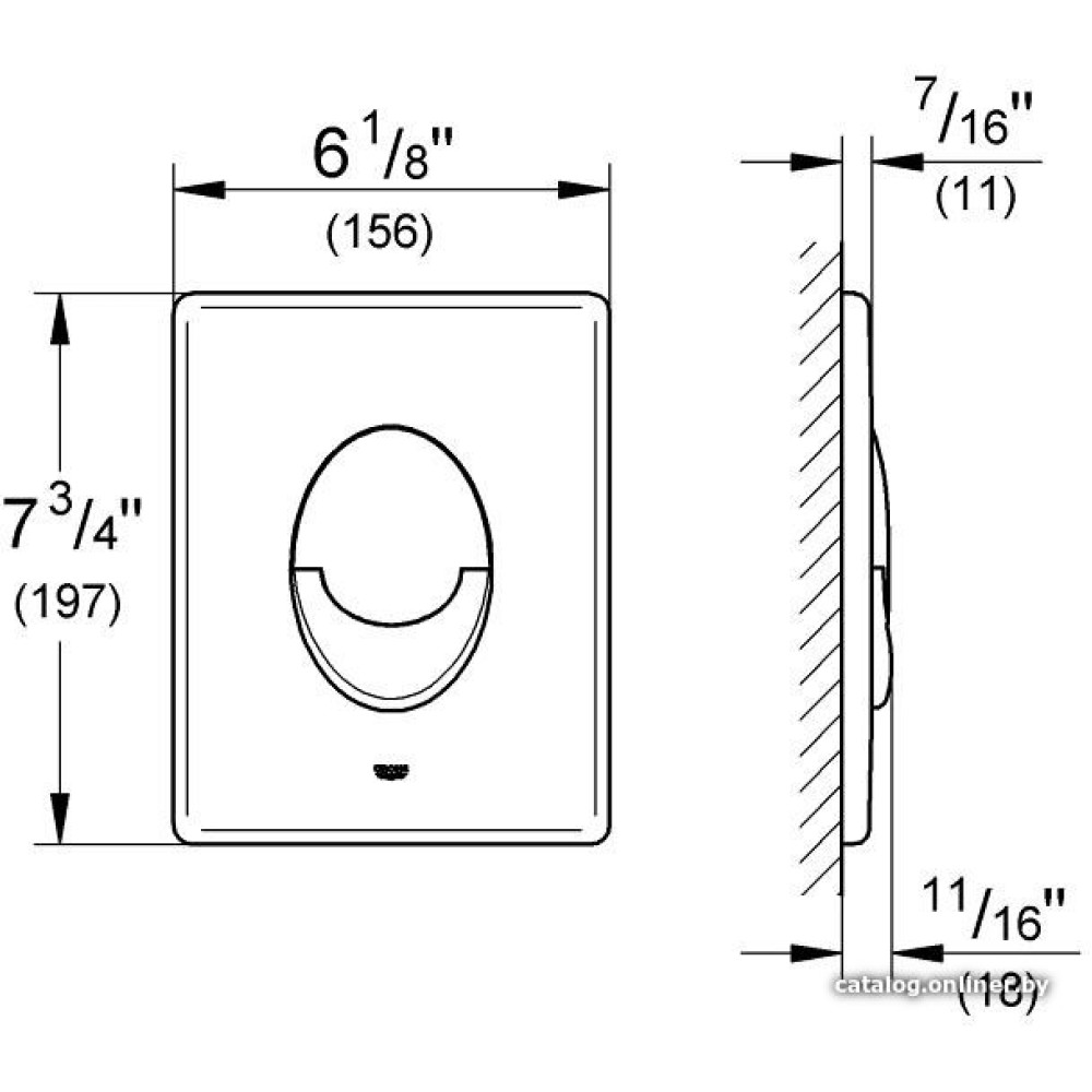 для унитаза, управление пневматическое, смыв двойной, скрытый монтаж, 156x197 мм, цвет: белый