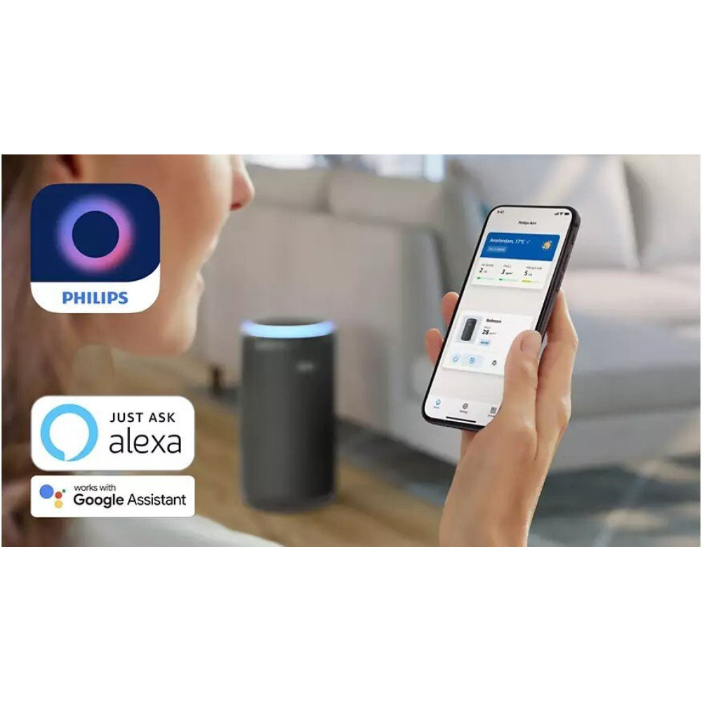очиститель, 3-ступ. фильтр, для помещения до 135 м², Amazon Alexa/Google Home/фирменное приложение, шум 15 дБ, питание: сеть, цвет темно-серый